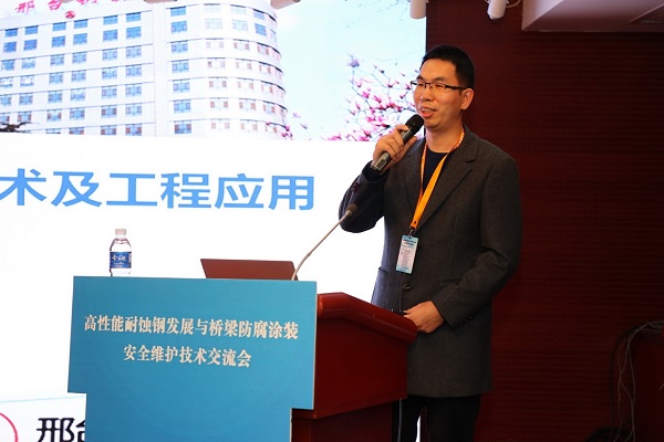 在技術(shù)交流環(huán)節(jié),本次會議共安排了15場次的專家報告。包括中國鋼研科技集團有限公司、邢臺鋼鐵有限責任公司、首鋼集團有限公司、馬鞍山鋼鐵股份有限公司、中交一公路勘察設(shè)計研究院有限公司、蘇交科集團股份有限公司、上海市城市建設(shè)設(shè)計研究院總院、武漢重型工程股份有限公司、山東電工電氣有限公司、中鐵寶橋集團有限公司、中鐵山橋集團有限公司、固瑞克流體設(shè)備(上海)有限公司、武漢雙虎涂料有限公司、河南青山環(huán)??萍加邢薰尽V州集泰化工股份有限公司等技術(shù)專家在會上做了精彩的技術(shù)分享。報告內(nèi)容題材涉及廣泛、內(nèi)容充實,既有正向設(shè)計、行業(yè)應(yīng)用、案例分析,又有新技術(shù)、行業(yè)標準、相關(guān)政策深度解讀。學術(shù)分享、學習交流氛圍濃厚,與會代表反響熱烈。其中,邢鋼首席技術(shù)專家 技術(shù)中心線材應(yīng)用研究所所長阮士朋作了《高強韌耐候螺栓用鋼關(guān)鍵技術(shù)及工程應(yīng)用》精彩主題演講,引起了與會專家、學者的普遍關(guān)注。