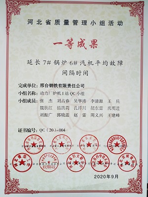 今年5月份邢鋼上報(bào)篩選出的10個(gè)質(zhì)量科技成果,參加了9月份河北省市場(chǎng)監(jiān)管局、省工信廳、省農(nóng)業(yè)農(nóng)村廳、省國(guó)資委、省總工會(huì)、省團(tuán)省委、省婦聯(lián)、省科協(xié)和省質(zhì)協(xié)等9個(gè)單位聯(lián)合組織的成果交流會(huì)發(fā)布比賽,由專家評(píng)委當(dāng)場(chǎng)打分確定比賽成績(jī),最終認(rèn)定了各參賽選手獲獎(jiǎng)等級(jí),日前通過冀質(zhì)協(xié)字〔2020〕20 號(hào)《關(guān)于印發(fā)2020年河北省質(zhì)量管理小組活動(dòng)質(zhì)量科技成果及優(yōu)秀企業(yè)、卓越領(lǐng)導(dǎo)者、優(yōu)秀推進(jìn)者名單的通知》文件中公布了質(zhì)量成果獲獎(jiǎng)名單,并頒發(fā)了證書。